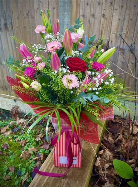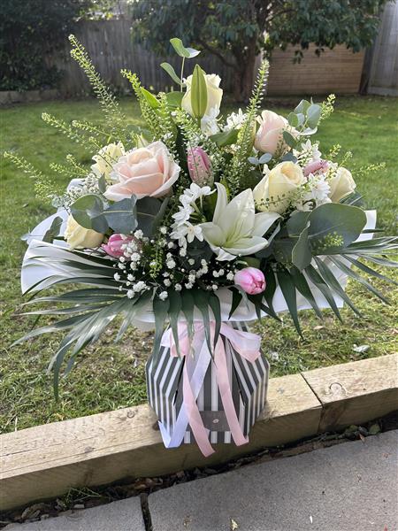 This fresh flower bouquet we have created with our own loving hands showcases natural charm in every stem. Order bouquets and arrangements online with ease, telephone or visit our shop in person if you are local, where every flower is crafted with attention to detail.