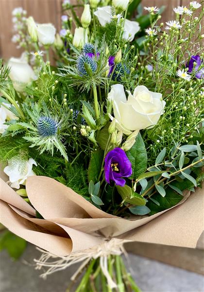 • This bouquet is gift wrapped in cellophane/paper with a natural raffia or similar bow