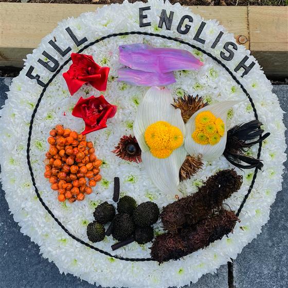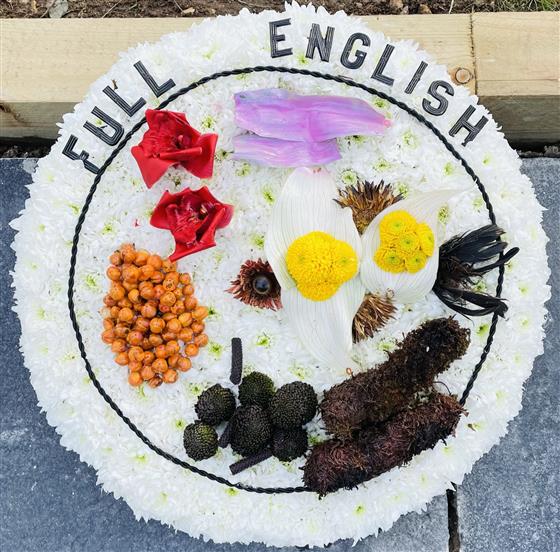 A brilliant tribute! a full English breakfast brought to life using flowers, so creative.