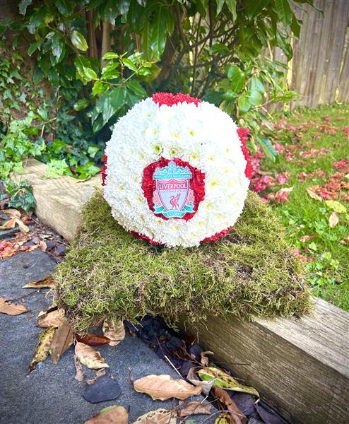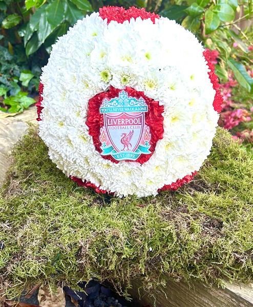 A Liverpool football with a Liverpool badge.