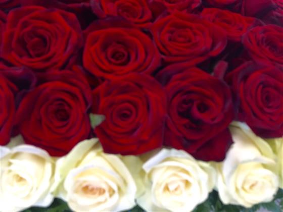 Naomi Roses edge with White Rose finished of with variegated ivy.
