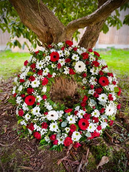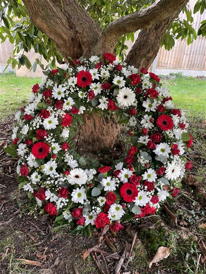 This Red and White Wreath is a great colour contrast and perfect for any Funeral.