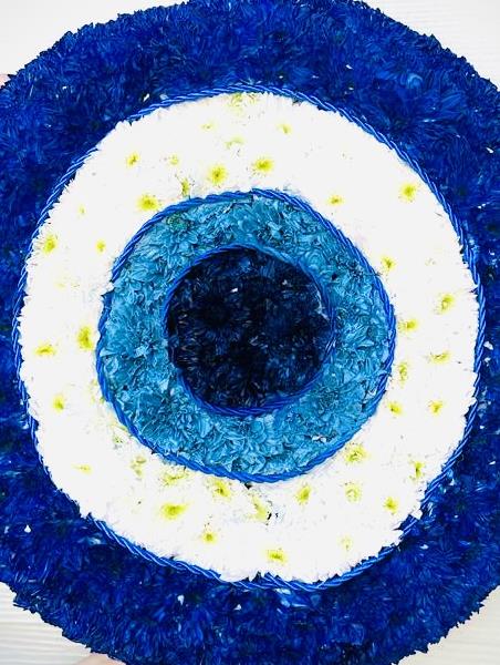 Based on a 16" posy pad this Turkish/Evil eye made a great tribute.