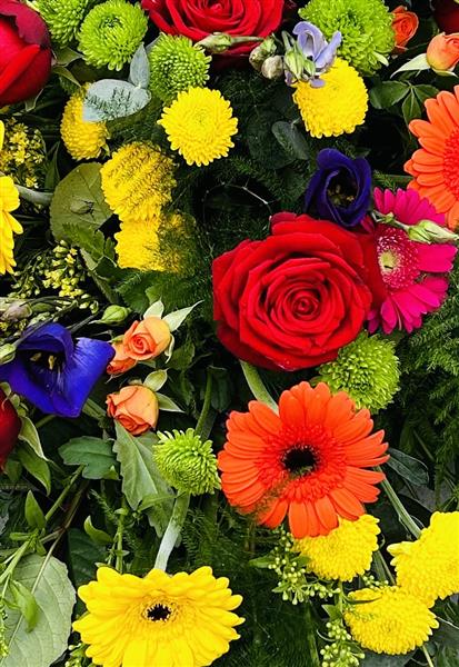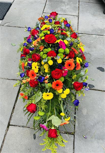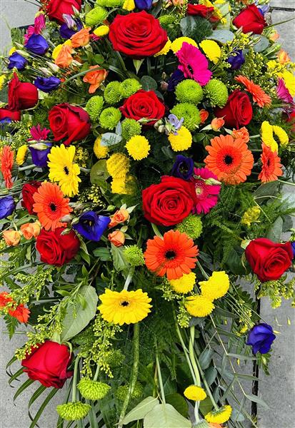 A colourful casket spray.