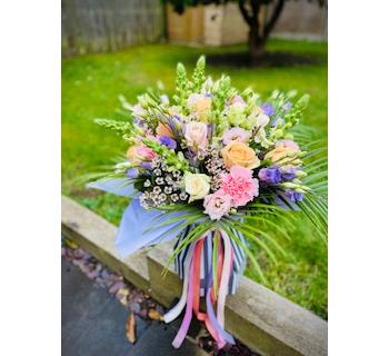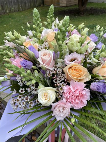 A pastel colour pallet of peach, pink lilacs and whites this is truly stunning.