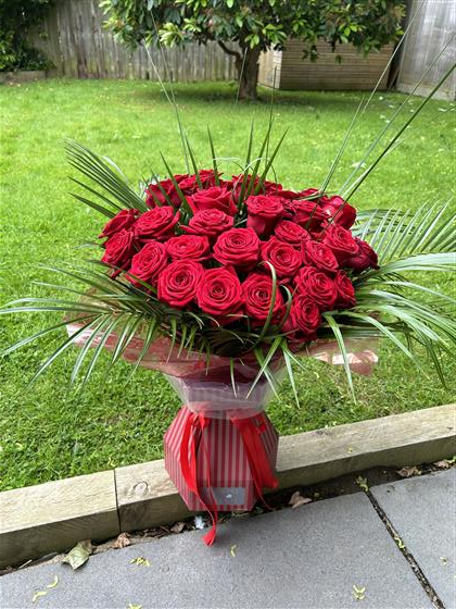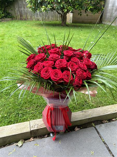 The ultimate I Love You gift. A generous aqua pack of romantic red Roses with a sprinkling of Diamante.